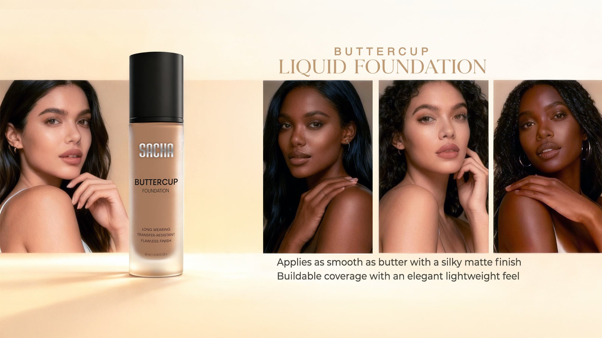 Our hero product is the iconic Sacha Buttercup Powder — with over 12,000 five-star Amazon reviews — which set a global benchmark for no white-cast finishing.